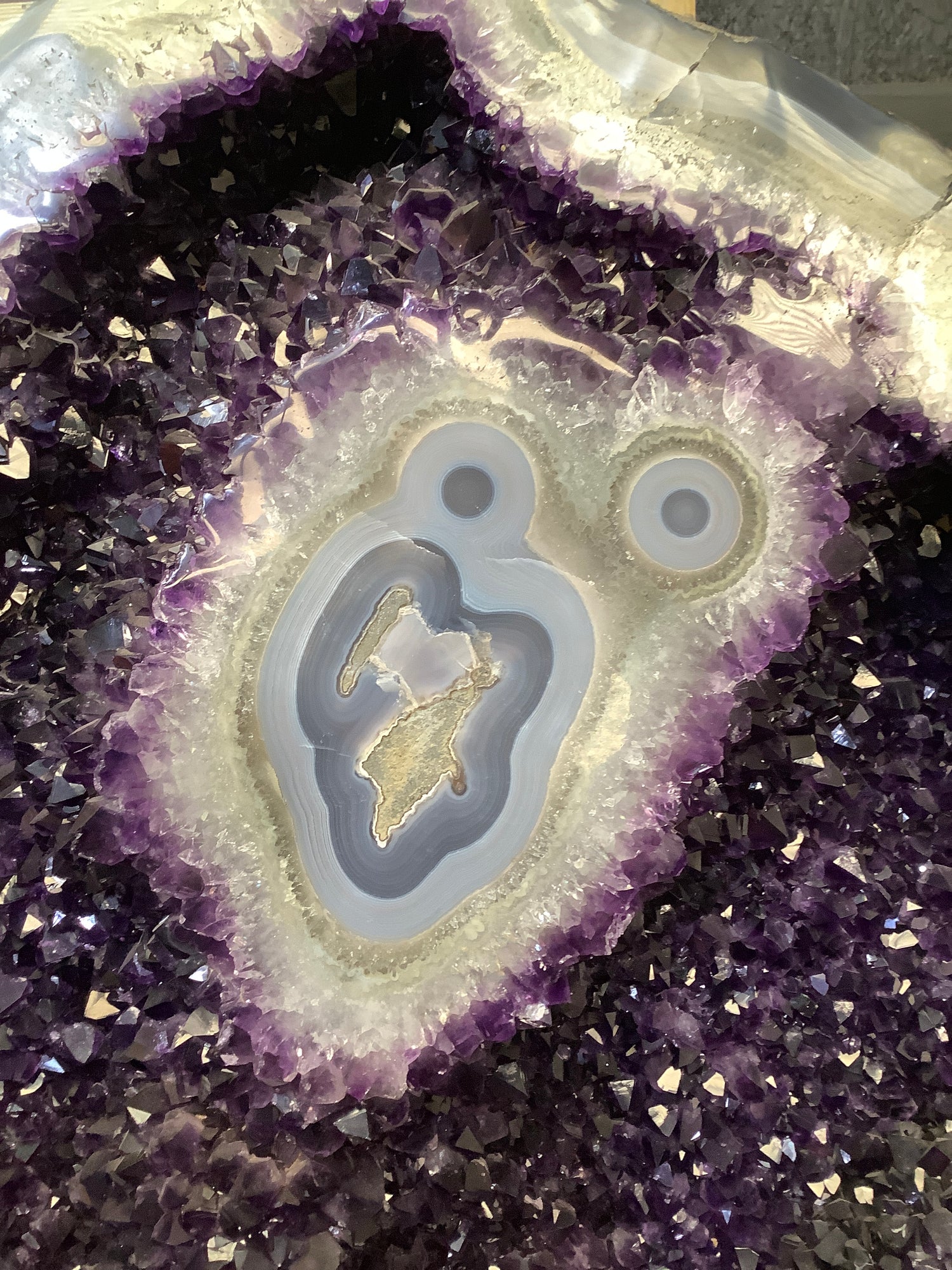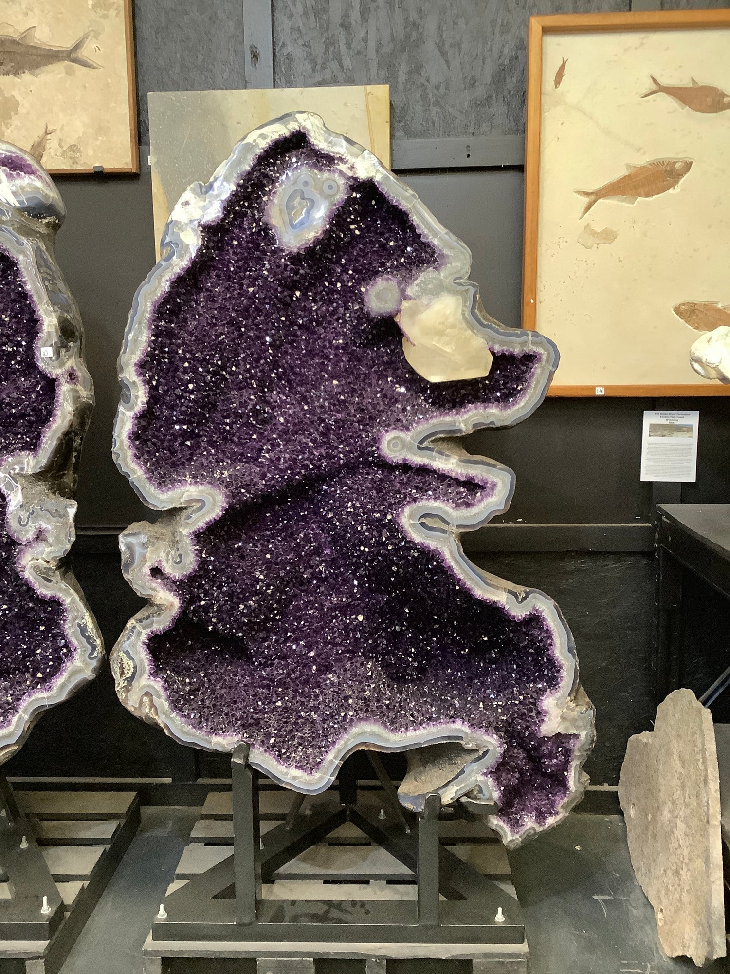 These amazing large Amethyst wings come from Brazil, South America. Featuring small to medium size points of a rich deep purple, there are Calcite and Agate inclusions. These wings come with a custom made stand for each wing.