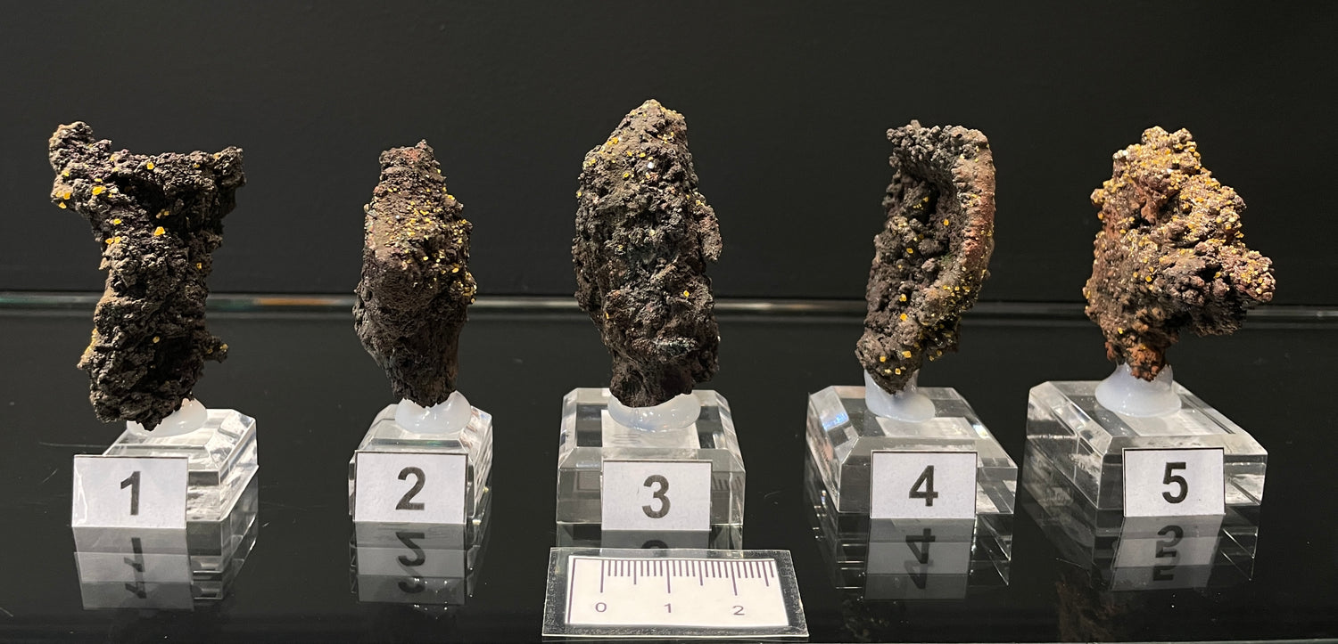Specimens glued to an acrylic base.