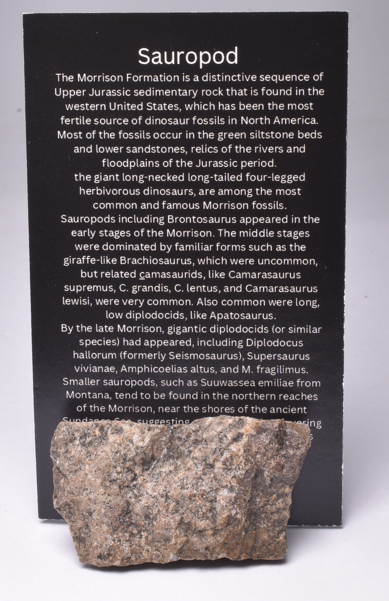 This is the Sauropod Dinosaur Bone Fossil, originating from the Jurassic Period approximately 151 million years ago, found in the Bone Cabin Quarry in Wyoming, USA.