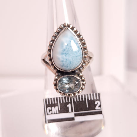 Regular price $210.00Unit priceUnavailableVery low stock (1 unit)LARIMAR & BLUE TOPAZ RING set in STERLING SILVER 3SSLBT1