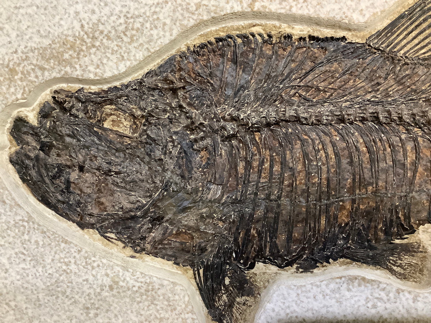 This beautifully framed Diplomystus dentatus fish is a simply stunning specimen.  This fossil is from the Eocene era at the Green River Formation in Wyoming, USA.