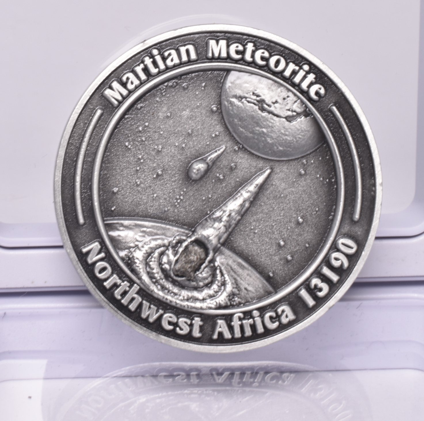 MARTIAN METEORITE in COLLECTORS COIN, NORTH WEST AFRICA 13190 MT136