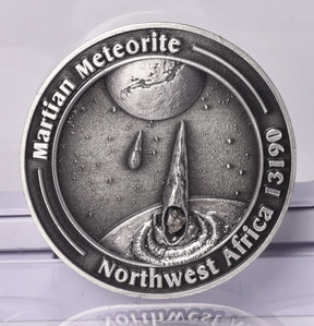 MARTIAN METEORITE in COLLECTORS COIN, NORTH WEST AFRICA 13190 MT140