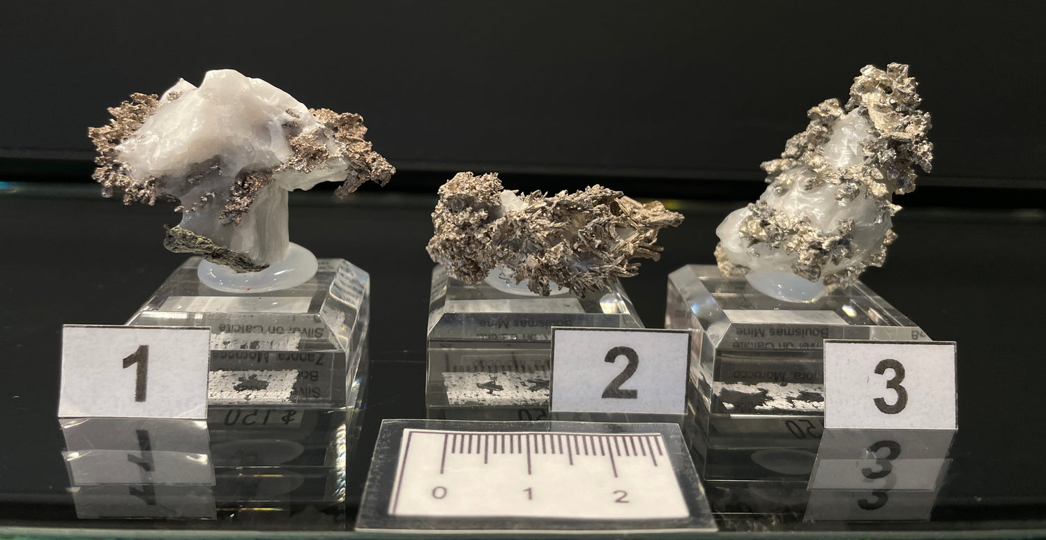 SILVER ON CALCITE, Morocco ISI073-75 - Specimen 1 is backordered and will ship as soon as it is back in stock.