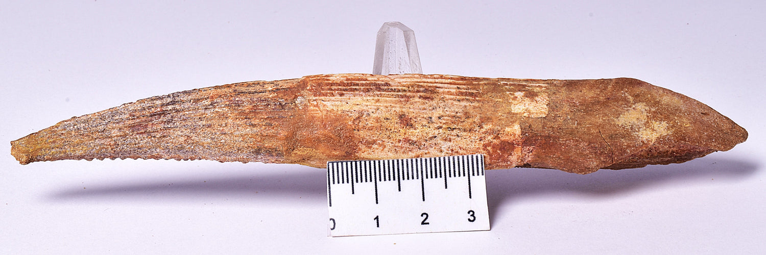 Delve into the prehistoric world with this Hybodus Shark Dorsal Spine Fossil, a genuine piece of natural history. Sourced from the phosphates of Morocco, this fossil dates back to the Late Cretaceous period, offering a tangible connection to the ancient oceans that once blanketed the earth. Each piece is a unique window into the past, revealing the intricate structure of a long-extinct shark species.