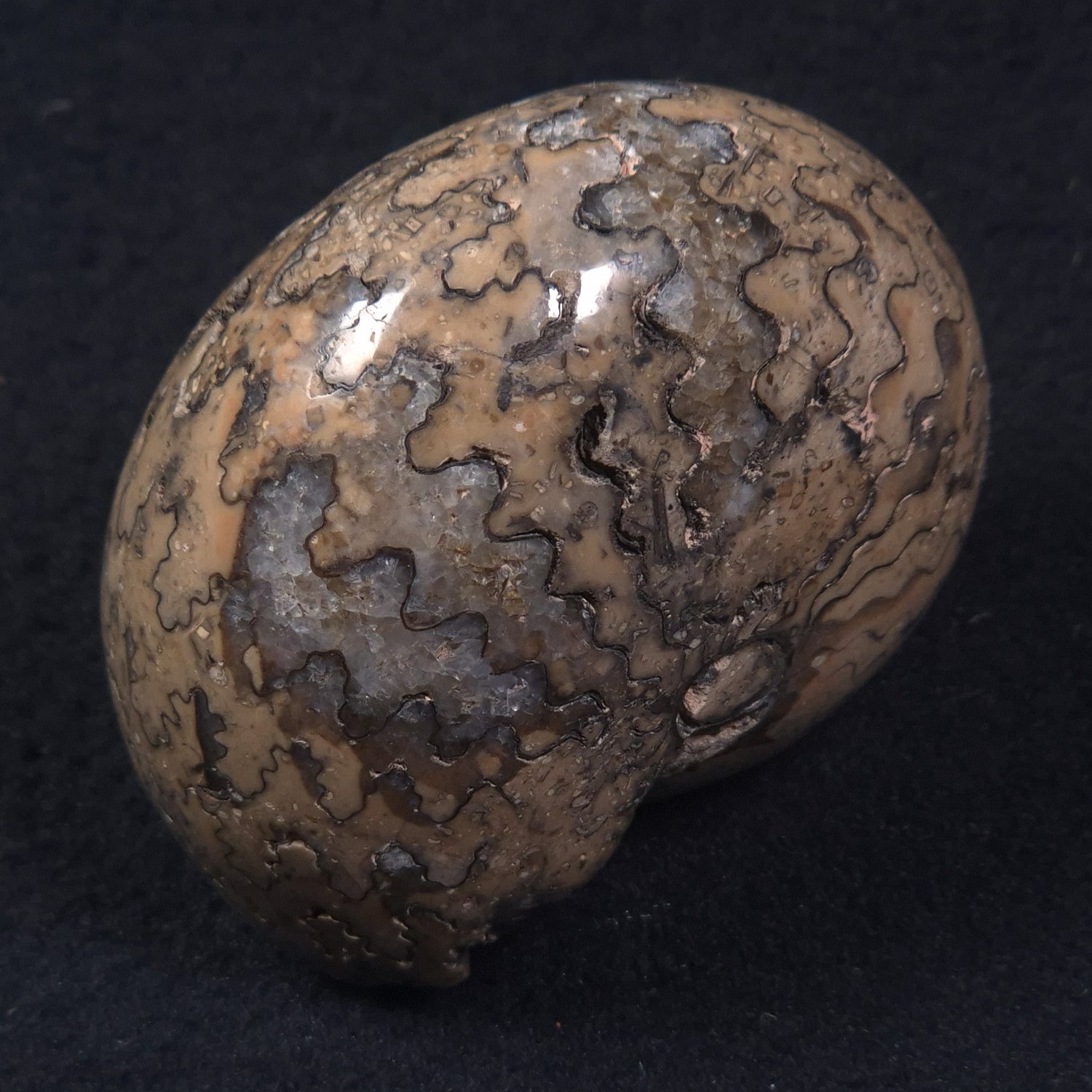 The ammonite has been cleaned and polished.