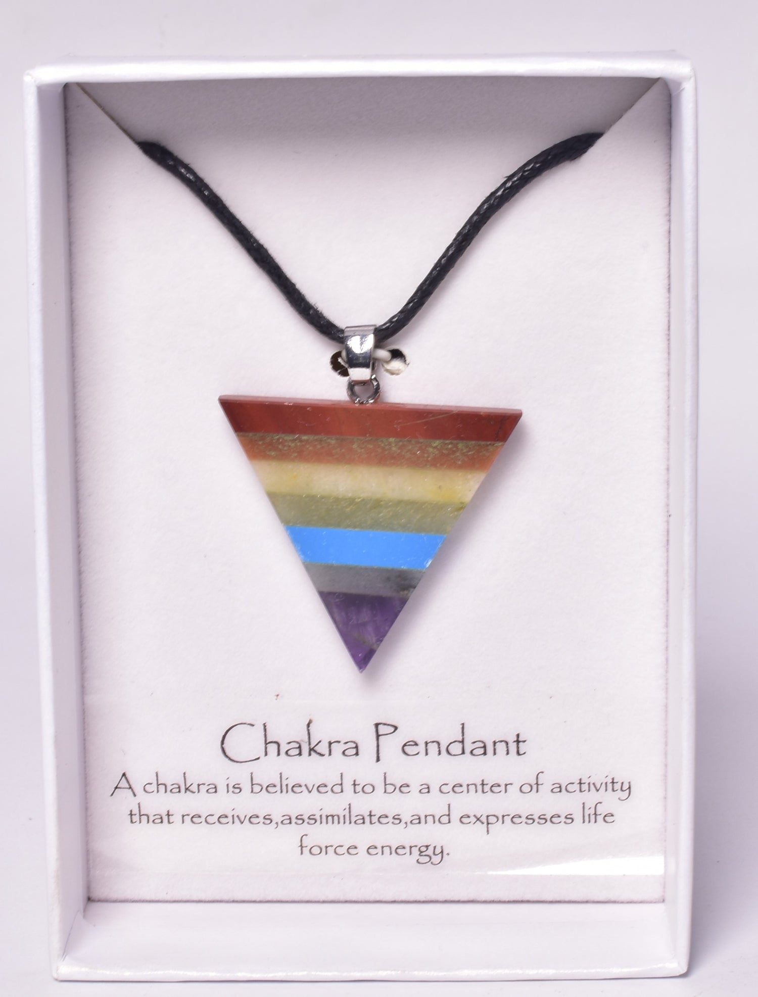 The Chakras are the seven power points in the human body that circulate energy or the life force also known as prana. Wear this pendant to clear the energy flow of the chakras.