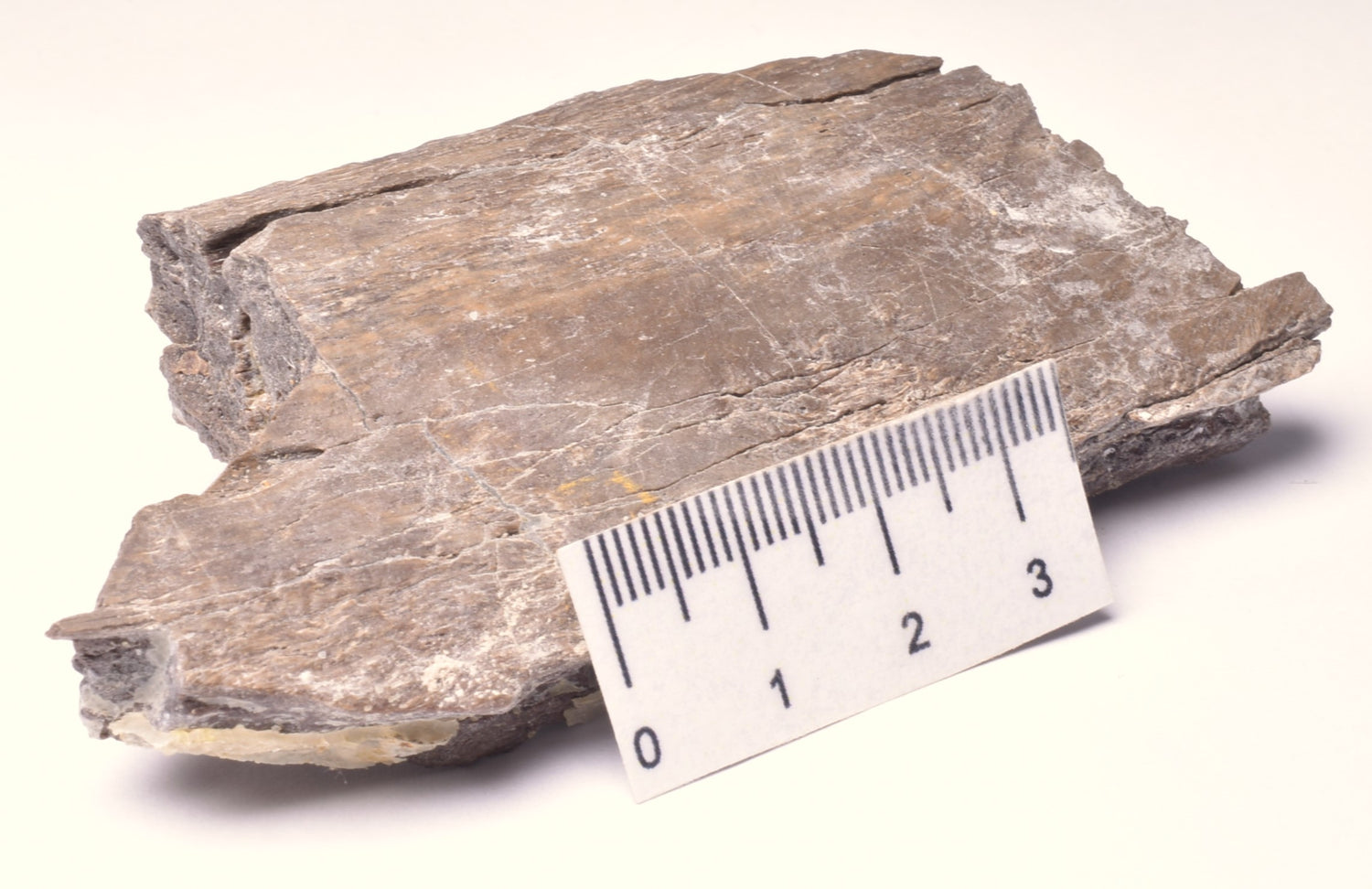 This fossil is a Hadrosaur Dinosaur Rib Bone from the Cretaceous Period, dating back 65.5 million years. It was found in the Lance Formation in Wyoming, USA and has an estimated size of 7.5 cm x 4 cm x 2 cm, with a weight of 83.9 grams.